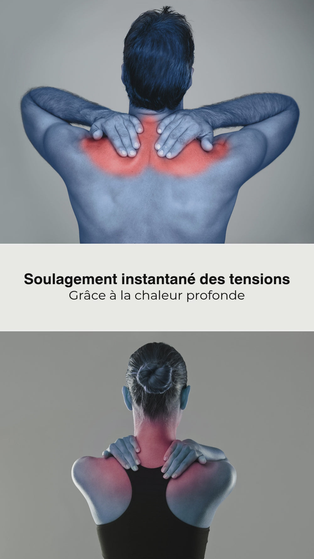 NÜKA utilise une technologie de chaleur douce combinée à des vibrations ciblées pour détendre les muscles en profondeur et stimuler la circulation sanguine. En quelques minutes, vous sentez les tensions se relâcher naturellement.